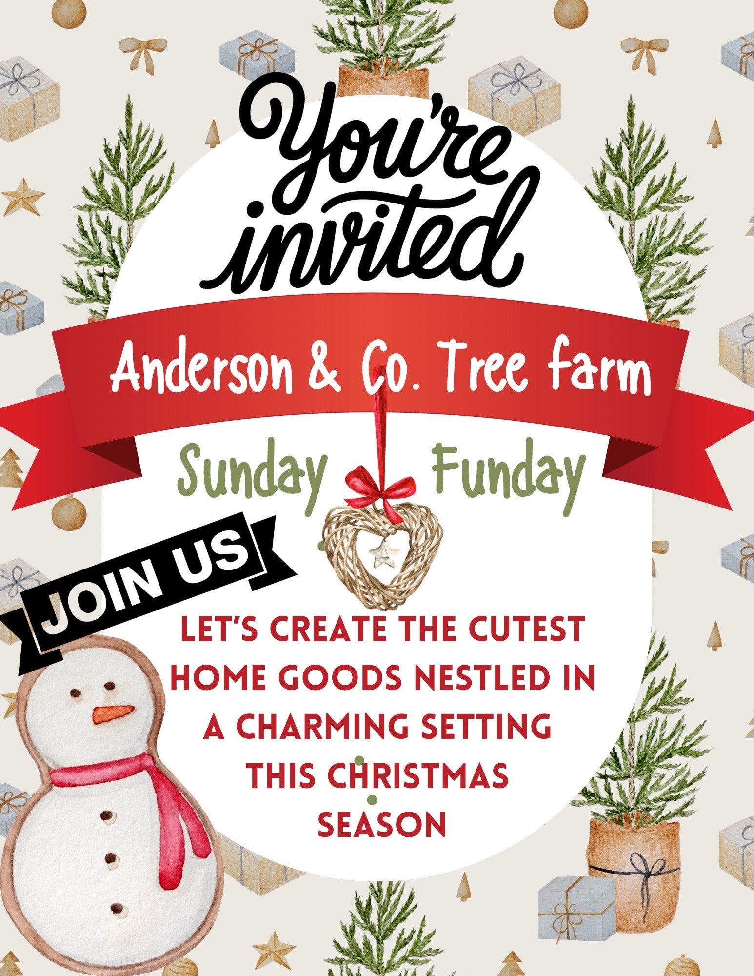 We will ALSO be hosting SUNDAY FUN-DAY AT Anderson & Co family tree farm, a magical setting that will spark your creativity!